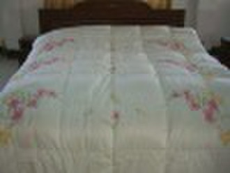 down comforter fabric:silk /cotton filling:90% white goose down size:single ,double,queen,king style:emboridery ,jacquard,boxes or diamond construction with double stitching.